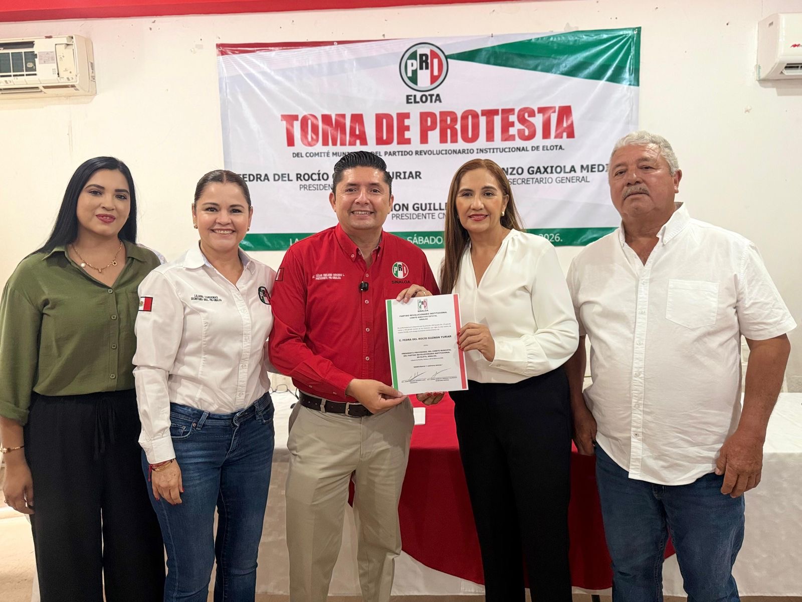En el evento desarrollado en Elota, rindieron protesta Fedra del Rocío Yuriar Guzmán como presidenta y Lorenzo Gaxiola Medina como secretario general del comité municipal; durante su mensaje, el presidente estatal destacó que el PRI es un partido que se construye desde el territorio y con la participación activa de su militancia, por lo que convocó a trabajar en unidad, con responsabilidad y compromiso, para recuperar la confianza ciudadana.